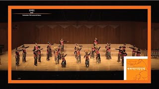 Όπως βλέπουμε στο βιντεάκι,υπάρχουν 16 άντρες που παίζουν μουσικά όργανα και 13 γυναίκες οι οποίες χορεύουν και τραγουδάνε στον ρυθμό της μουσικής. Στην αρχή στο βιντεάκι, κυριαρχεί ένας αργός ρυθμός το οποίο δικαιολογεί και τις πιο μαλακές και αργές χορευτικές κινήσεις. Αργότερα όμως, παρατηρούμε οτι ο ρυθμός αλλάζει ξαφνικά σε πιο γρήγορο και θα μπορούσαμε να πούμε πιο ‘ακραίο’. Γι’αυτόν τον λόγο κιόλας αλλάζει και ο τρόπος κίνησης σε πιο γρήγορο και κοφτό. Επίσης παρατηρούμε ότι στο συγκεκριμένο βιντεάκι έχουμε πεντατονική κλίμακα χωρίς ημιτόνια. Συνήθως η πεντατονική χωρίς ημιτόνια χρησιμοποιείται στην Κίνα ενώ η πεντατονική με ημιτόνια στην Ιαπωνία.